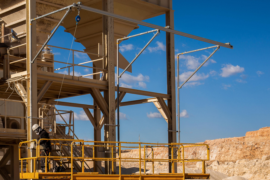 Het bordes is voorzien van geïntegreerde valbeveiliging. De flexbows zijn gekoppeld aan een Safeacces-rails en bieden volledige bescherming over de hele lengte van het bordes.